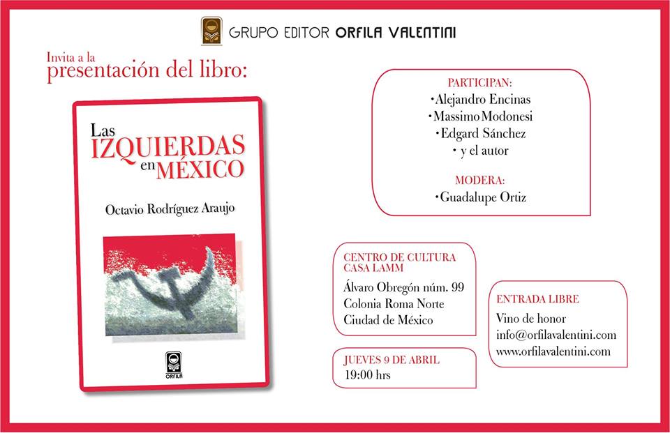 5 abril, 2015 Massimo Modonesi Presentación libro Las izquierdas mexicanas de O. Rodríguez Araujo Comparte esto: Haz clic para compartir en X (Se abre en una ventana nueva) X Haz clic para compartir en Facebook (Se abre en una ventana nueva) Facebook Me gusta Cargando... Relacionado