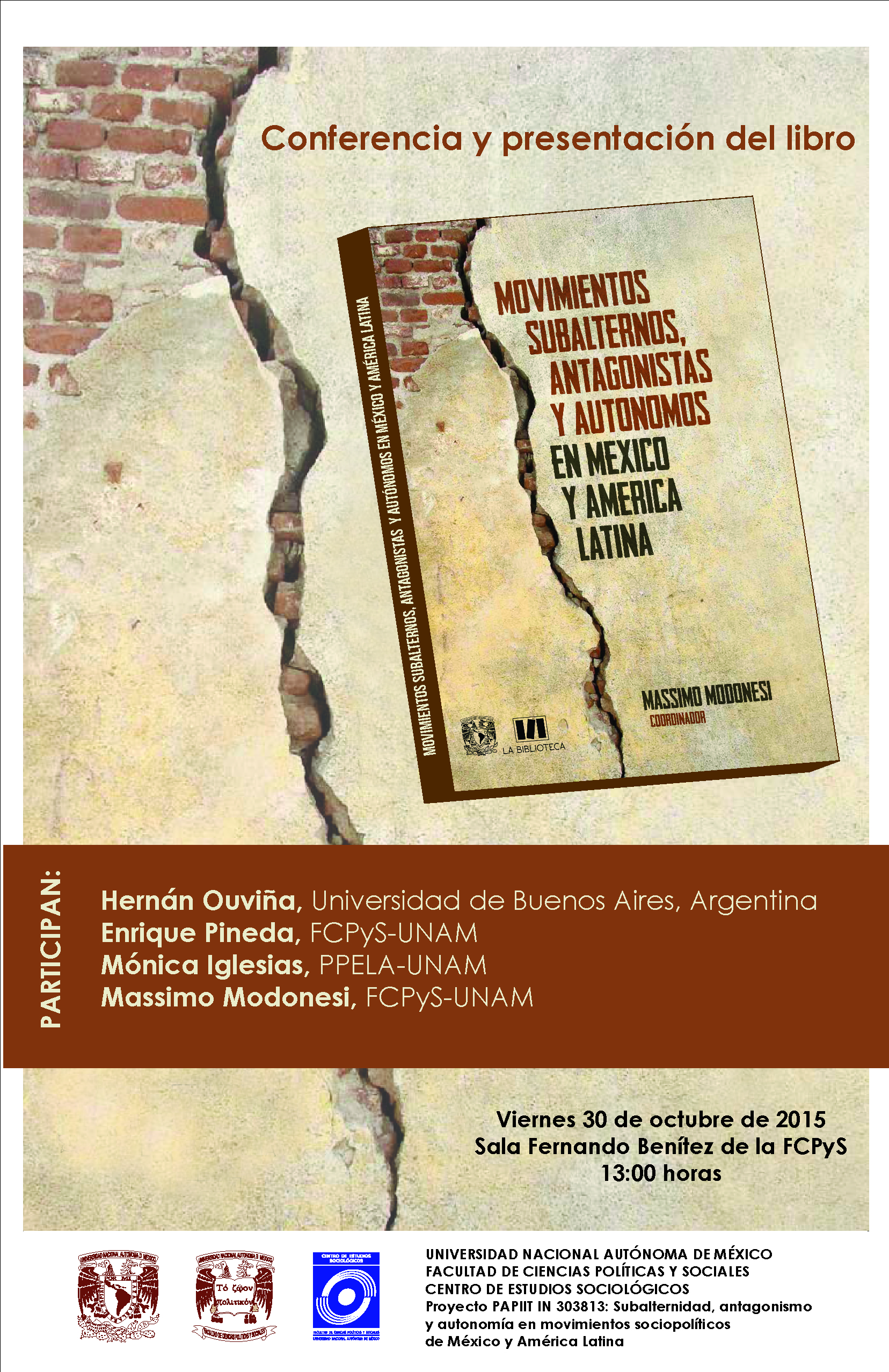 27 octubre, 201527 octubre, 2015 Massimo Modonesi Presentación del libro sobre Movimientos subalternos, antagonistas y autónomos (FCPyS-UNAM, viernes 30 a las 13) Comparte esto: Haz clic para compartir en X (Se abre en una ventana nueva) X Haz clic para compartir en Facebook (Se abre en una ventana nueva) Facebook Me gusta Cargando... Relacionado