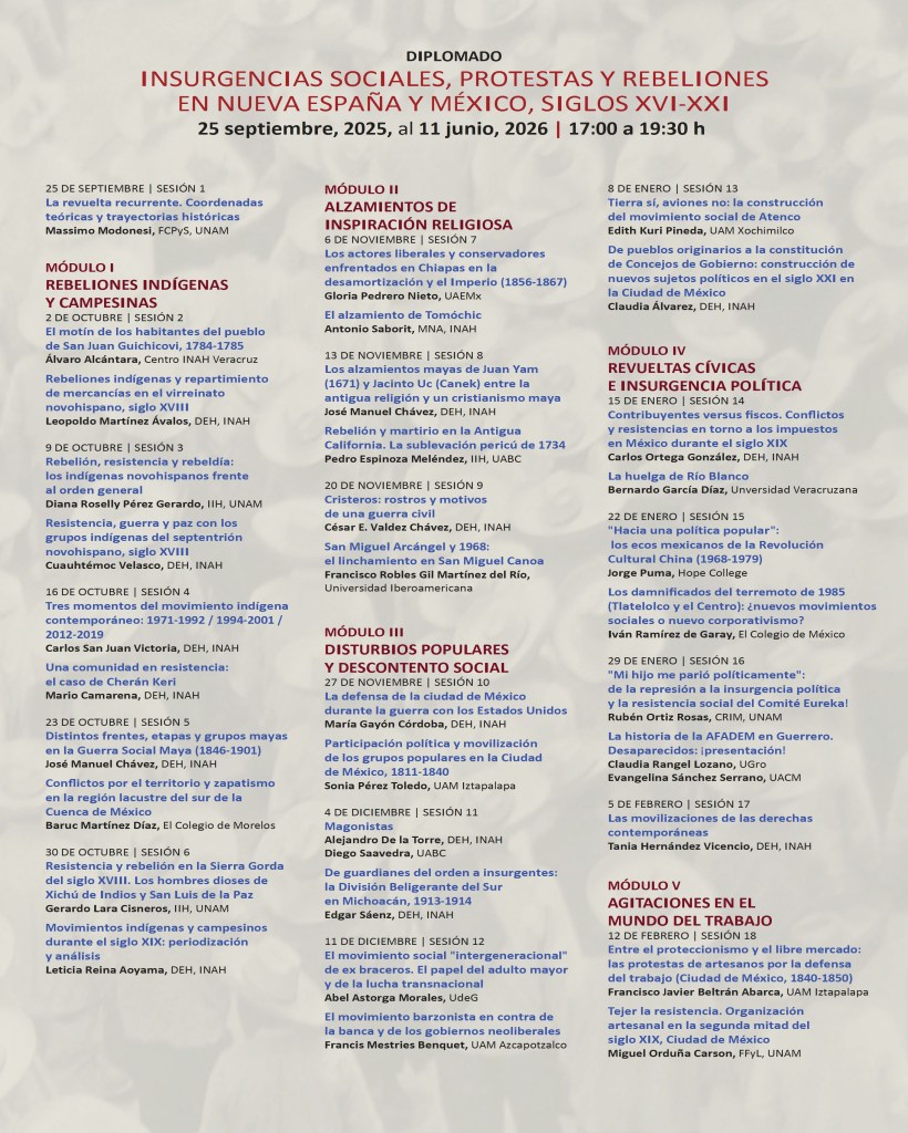 3 septiembre, 202525 septiembre, 2025 Massimo Modonesi Insurgencias y rebeliones en México poster_Diplo Insur_PROG_MailingDescarga Comparte esto: Haz clic para compartir en X (Se abre en una ventana nueva) X Haz clic para compartir en Facebook (Se abre en una ventana nueva) Facebook Me gusta Cargando... Relacionado